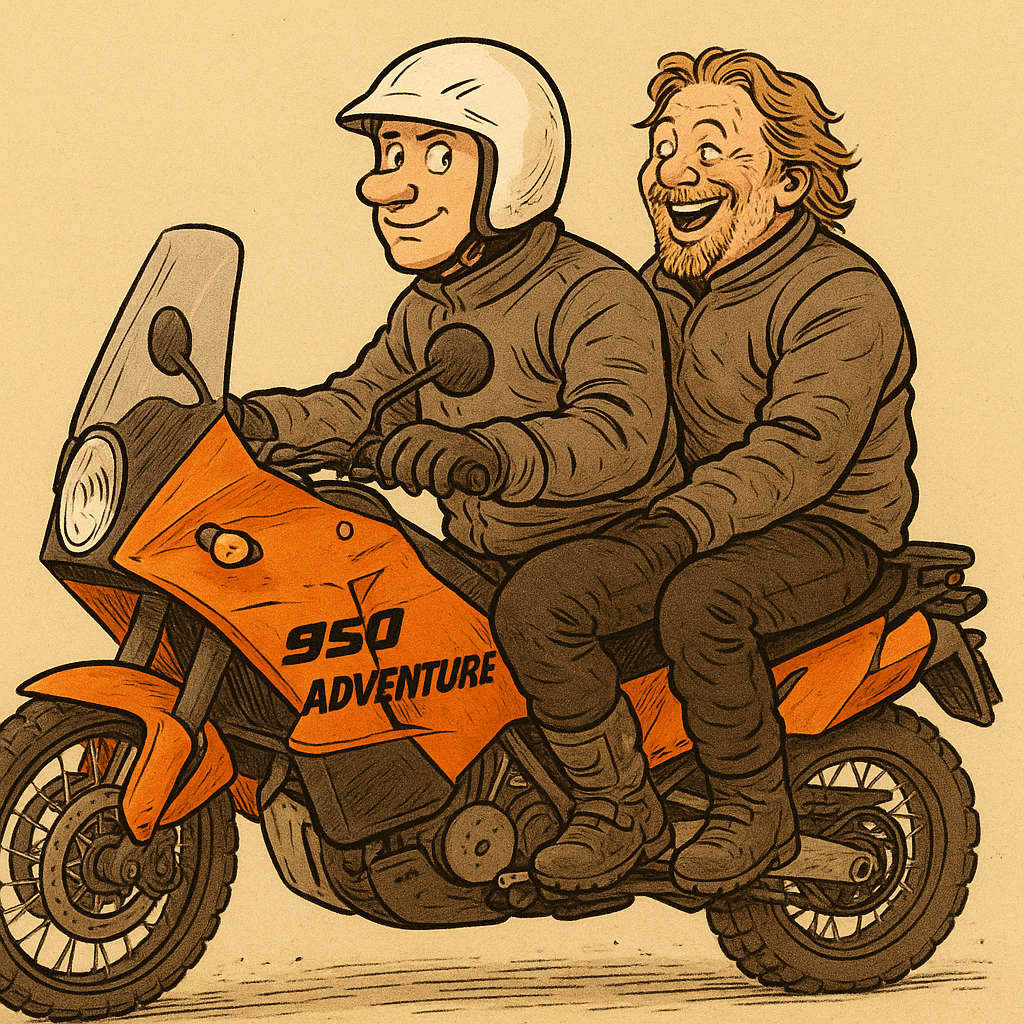 It’s no secret that Charley Boorman and Ewan McGregor’s *Long Way Round* documentary of 2004 was the single most influential event in adventure motorcycling history. It had a huge and lasting impact on the genre which can be observed even to this day, some twenty-one years after the fact. In planning for their trip, Charley and Ewan’s shortlist consisted of two motorcycles: the BMW 1150 GS Adventure and the KTM 950 Adventure. Ewan initially preferred the 1150 GSA, whereas Charley was besotted with the 950 at first sight. After test riding both bikes, Ewan was converted on the 950. As it turned out, KTM declined to provide promotional bikes (presumably fearing subframe failure) and the pair set off on their vanilla GSAs instead.